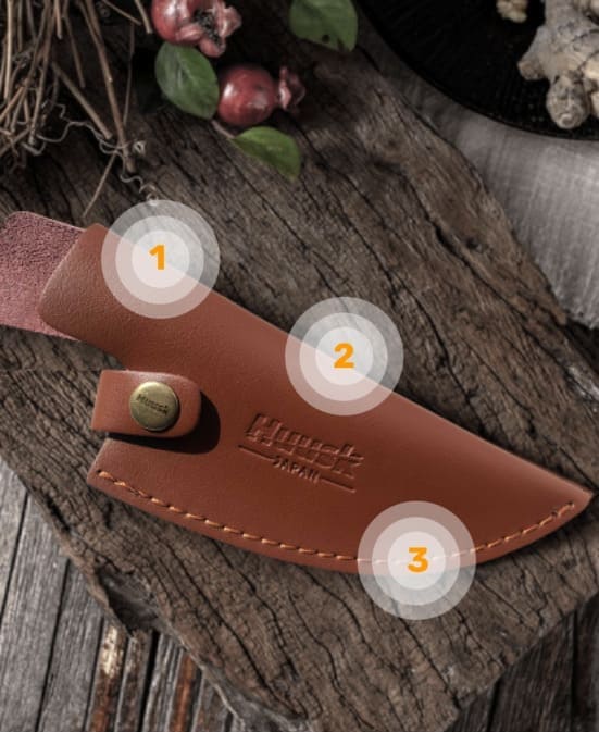 Fabricada en cuero auténtico de alta calidad, esta funda protectora mantendrá tu cuchillo Huusk a salvo de daños, permitiéndote crear hermosos platos durante años.